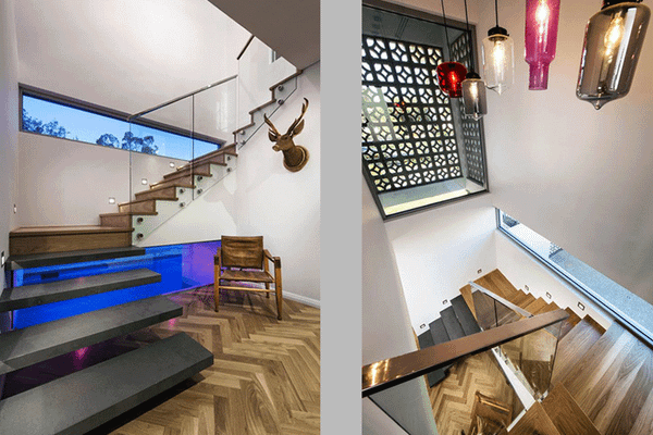 Dùng ánh sáng làm nội thất, ánh sáng tự nhiên phối hợp với ánh sáng từ bể bơi tạo 1 gam màu nhấn cho biệt thự. Các mảng tường trắng được sử dụng rất phổ biến trong phong cách Minmalist như một phông nền trơn nhằm tăng sự độc đáo các thành phần kiến trúc khác.
